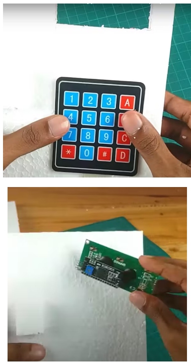 然后,安裝鍵盤模塊并將其連接到Arduino Nano板(為此,使用男性引腳頭)。然后,把面包板粘在門的后面。