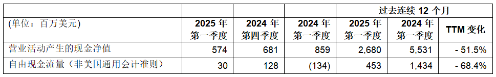 凈利潤(rùn)和每股攤薄收益分別為5,600萬美元和0.06美元,去年同期為5.13億美元和0.54美元??鄢Y產(chǎn)減值、重組費(fèi)用及其他相關(guān)逐步淘汰成本(扣除相關(guān)稅費(fèi)影響)后,2025年第一季度的凈利潤(rùn)和每股攤薄收益分別為6,300萬美元和0.07美元。