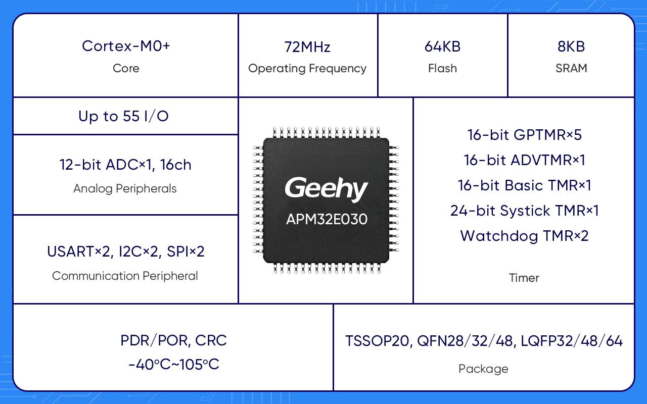 - 高主頻:搭載Cortex-M0+內(nèi)核主控MCU芯片,主頻最高可達 72MHz;