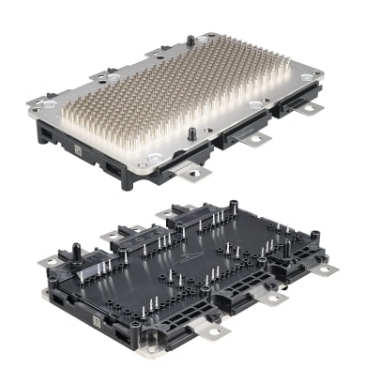 1200V六組YM SiC功率模塊 采用直接冷卻的銅針翅基板設(shè)計(jì),通過(guò)將針翅直接浸入冷卻劑中,不僅簡(jiǎn)化了系統(tǒng)組裝,還顯著提升了熱性能。此外,模塊使用氮化硅基板,這種堅(jiān)固的陶瓷材料具備卓越的抗熱沖擊性和耐磨性,有效地將芯片產(chǎn)生的熱量快速散發(fā),從而降低系統(tǒng)工作溫度。另一個(gè)創(chuàng)新的封裝特點(diǎn)是燒結(jié)芯片粘接技術(shù)。這種先進(jìn)的芯片粘接方法在芯片與氮化硅基板之間建立了牢固的結(jié)合,從而確保出色的導(dǎo)熱性和機(jī)械耐久性,支持更高的功率輸出并提供優(yōu)異的熱循環(huán)性能。直接冷卻銅針翅技術(shù)與燒結(jié)芯片粘接技術(shù)共同提高了熱性能和系統(tǒng)使用壽命。