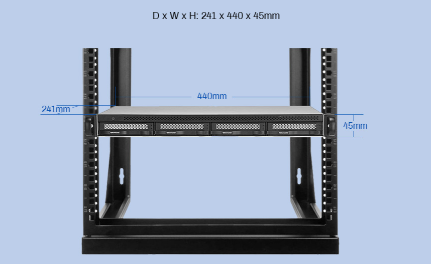 鐵威馬D4-320U是一款1U 4盤位的直連硬盤柜,采用的是小型化機(jī)架式設(shè)計(jì)。機(jī)箱緊湊小巧,深度僅241mm(9.49英寸),重3.2kg,節(jié)省空間,這種設(shè)計(jì)不僅節(jié)省空間,還能確保設(shè)備在有限的空間內(nèi)穩(wěn)定運(yùn)行,對(duì)于空間資源緊張的中小型企業(yè)而言,無(wú)疑是一個(gè)明智之選。