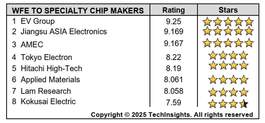 全球半導(dǎo)體供應(yīng)商大獎(jiǎng)——WFE基礎(chǔ)芯片制造商(GlobalSemiconductorSupplierAwards-WFEtoFoundationChipMakers)中排名第一
