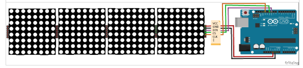 該項(xiàng)目使用Arduino Uno和MAX7219點(diǎn)陣模塊結(jié)合了兩個(gè)主要功能: