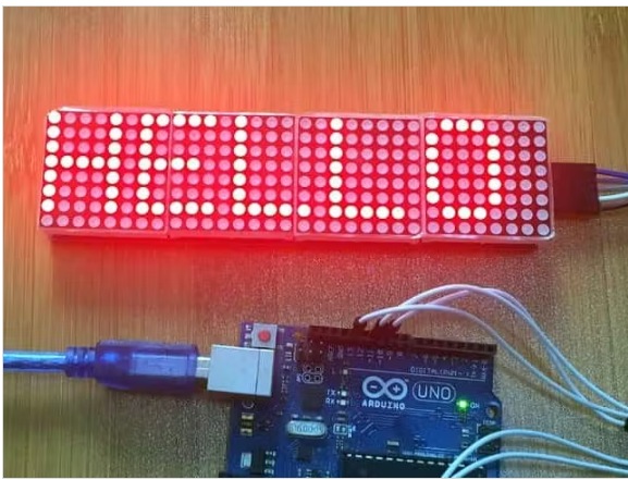 要顯示的文本存儲在微控制器中,并使用MD_MAX72XX和Parola等庫來管理矩陣顯示和處理滾動效果。