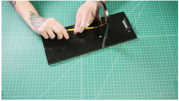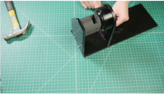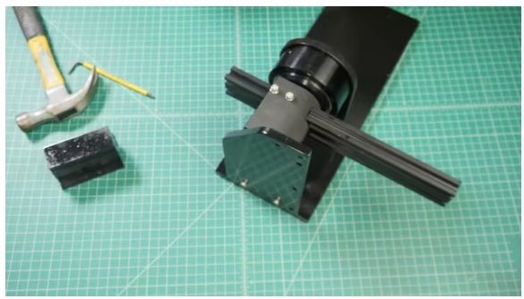 ?使用十字支撐,M5螺釘和t型螺母將200mm鋁型材連接到300mm鋁型材上。