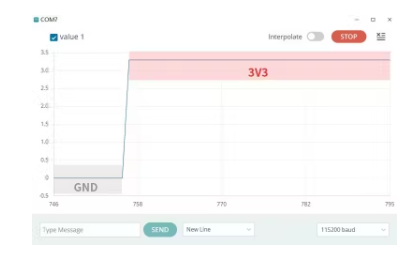 通過從IO接口讀取模擬值并進行電壓轉(zhuǎn)換,可以得到檢測到的電壓值。