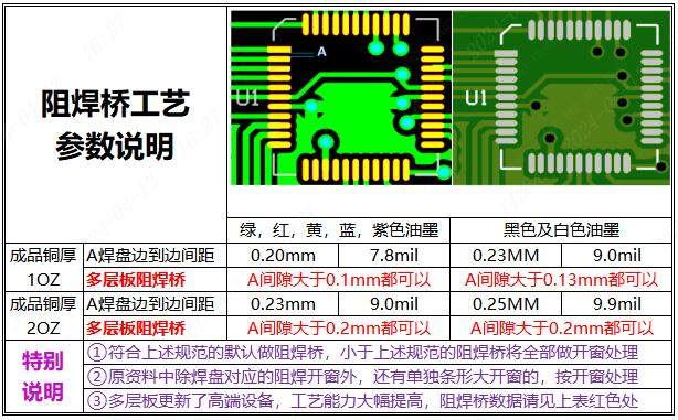 綜上所述:在設(shè)計(jì)阻焊橋時(shí),不僅要考慮芯片焊盤(pán)之間的寬度,還要考慮板廠所使用的工藝。