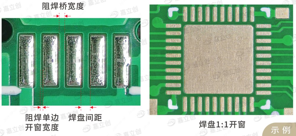 不同廠家的生產(chǎn)工藝不一樣,這里我以嘉立創(chuàng)官網(wǎng)上展示的阻焊橋生產(chǎn)工藝能力進(jìn)行分析: