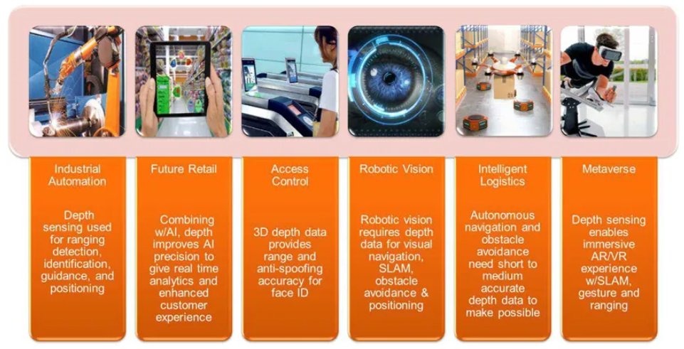 深度感知是實(shí)現(xiàn) 3D 測繪、物體識別、空間感知等高級認(rèn)知功能的基礎(chǔ)技術(shù)。對于需要精確實(shí)時處理環(huán)境與物體的形狀、位置和運(yùn)動的領(lǐng)域,這項(xiàng)技術(shù)不可或缺。通過深度感知技術(shù),可以準(zhǔn)確獲取目標(biāo)物體的位置信息,有助于實(shí)現(xiàn)自適應(yīng)和智能化操作。