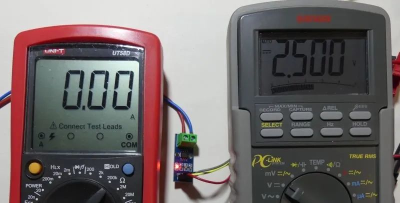 讓我們使用萬用表的 "rel "功能,觀察電流為 1A 時(shí)電壓為 2.5V 的變化: