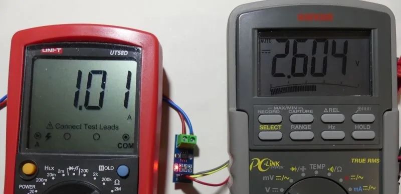 電流為 1.01A 時(shí),輸出端電壓為 2.604V: