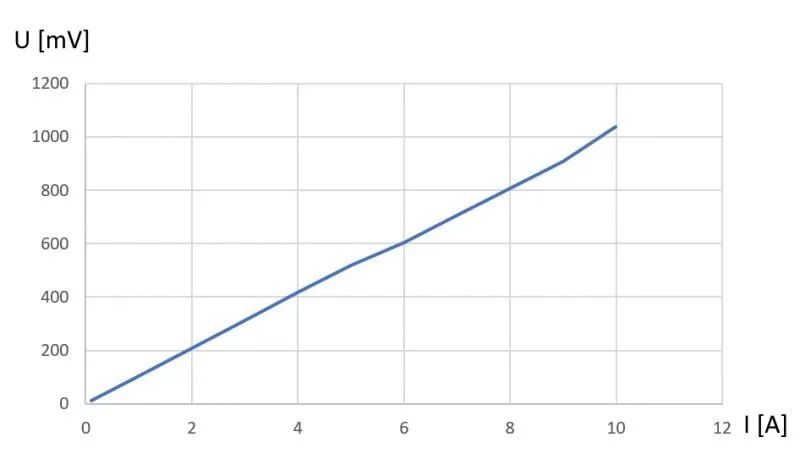 重要的是測量電路電阻低、壓降低、功率損耗低,10A 時(shí),模塊連接器上的壓降僅為 45mV: