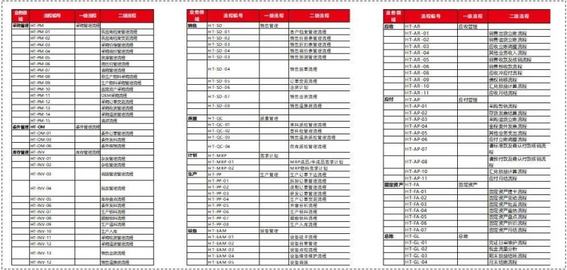 經(jīng)過(guò)雙方實(shí)施團(tuán)隊(duì)的合作,共梳理了94個(gè)一、二級(jí)流程,數(shù)百個(gè)三級(jí)流程,形成了八大冊(cè)的各領(lǐng)域業(yè)務(wù)解決方案。