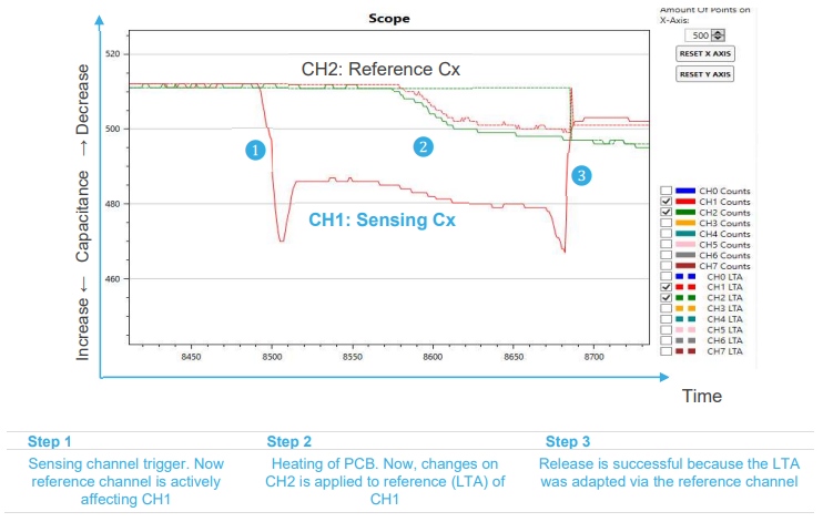 > 傳遞給傳感器IC和感測電極的差分變化值不能僅用內(nèi)部補(bǔ)償方法來解釋,還需要外部參考信道。