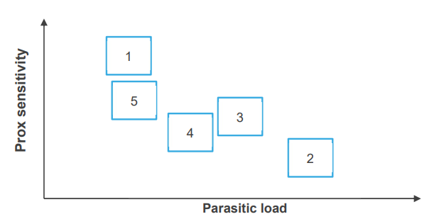 圖3.1平行板案例的接近靈敏度與寄生負(fù)載的權(quán)衡