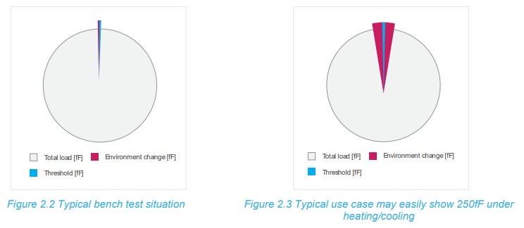 > 由于溫度和濕度的變化,更容易給面積更大的方案帶來顯著的電容值變化。