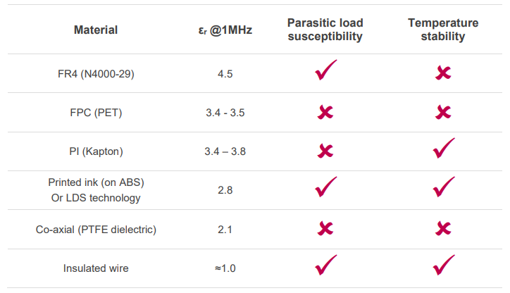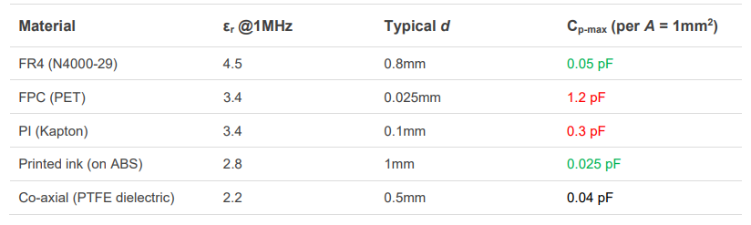 電容式傳感器的電路和基底材料特性會(huì)有很大的不同。電容式傳感器導(dǎo)體和PCB/FPC基底類型包括銅帶、塑料上的印刷油墨、傳統(tǒng)的FR4、FPC變體和簡單的絕緣線。以下是電容式傳感器使用材料的常用示例清單。