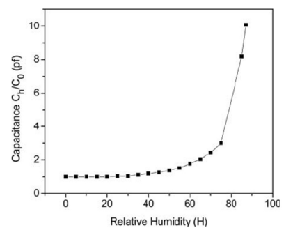 當(dāng)基板吸收了水分以后,就增加了材料的介電常數(shù)(εr),這轉(zhuǎn)化為任何平行導(dǎo)電傳感器板的寄生電容(Cp)的增加。
