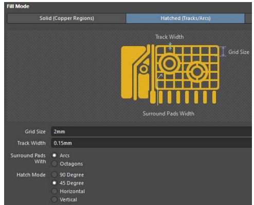 調(diào)整網(wǎng)格大小參數(shù),以得到所需的網(wǎng)格線寬在實(shí)際接地部分(GND)所占的百分比。
