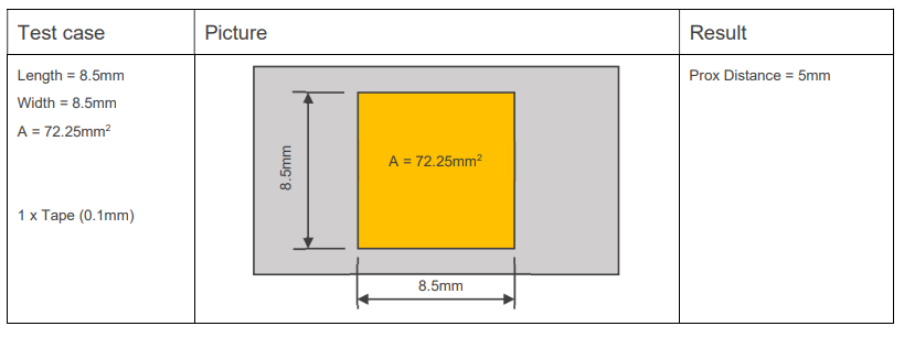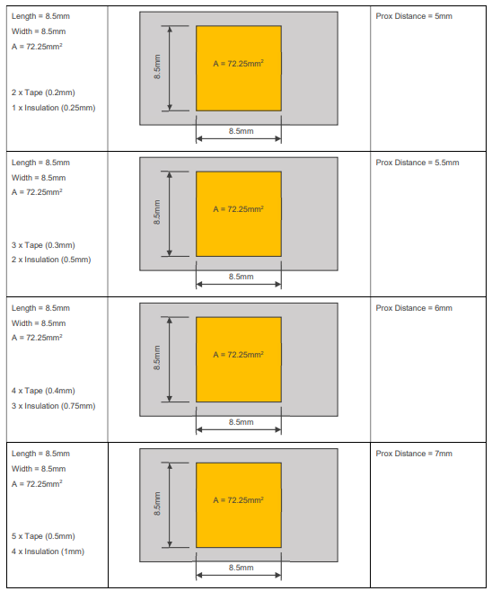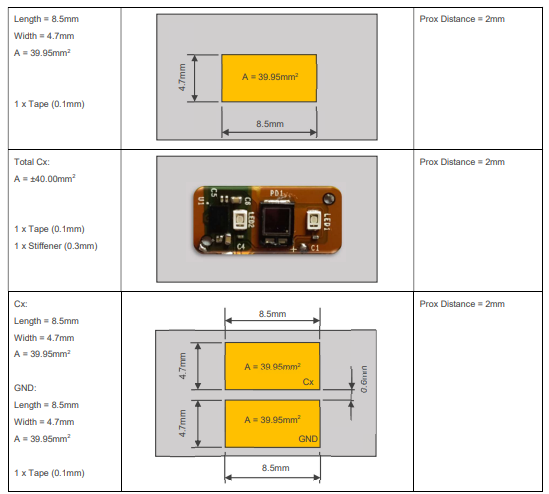 接近傳感器的最小推薦電極導(dǎo)體面積尺寸為:100mm2