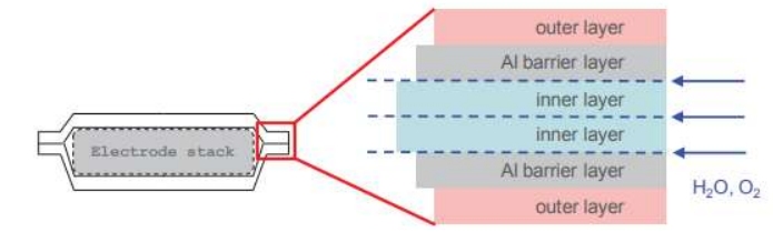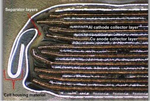 圖3.2鋰離子電池的側(cè)面輪廓顯示外殼材料和其他不導(dǎo)電層