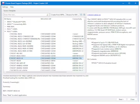 3 .選擇CY8CKIT-062S2-AI PSOC作為您的BSP