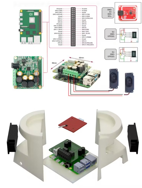 Roomie通過(guò)連接到Pi的NFC閱讀器讀取NFC標(biāo)簽。標(biāo)簽的唯一ID與Spotify URI匹配,該URI存儲(chǔ)在本地MariaDB SQL數(shù)據(jù)庫(kù)中。一旦匹配,樹(shù)莓派使用Raspotify直接流音樂(lè)-感謝HiFi DAC HAT和集成揚(yáng)聲器。