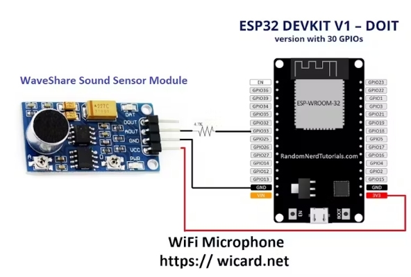 下面是一個簡單的電路與WaveShare聲音傳感器和ESP32 DEVKIT: