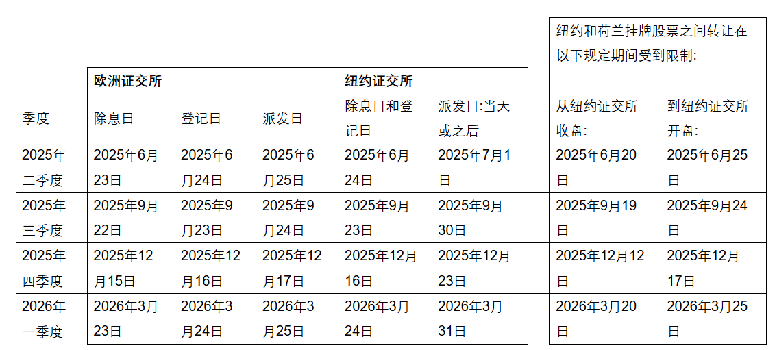 ?分四個季度向每個季度派發(fā)月登記在冊的持有流通股的股東,派發(fā)每股0.36 美元現(xiàn)金股息,2025 年第二、第三和第四季度和 2026 年第一季度每季度派發(fā) 0.09 美元,詳細(xì)的派發(fā)時間安排見文后附表;