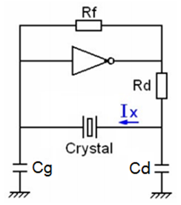 振蕩電路的激勵(lì)功率當(dāng)電路通電,IC工作信號(hào)注入晶體,驅(qū)使晶體諧振器振蕩時(shí),內(nèi)部的石英晶片會(huì)產(chǎn)生機(jī)械振蕩,由于晶片的變形、震動(dòng)和內(nèi)部摩擦等,將會(huì)產(chǎn)生一些損耗。如果激勵(lì)強(qiáng)度過小,容易出現(xiàn)起振困難,且信號(hào)的信噪比較差;而激勵(lì)強(qiáng)度過大時(shí),可能引起晶體的不可逆損壞。使用高頻電流探頭測試流過晶體電流Ix的有效值,可以算出電路給予晶體的激勵(lì)功率DL :DL=I2*RL , RL=Rr*(1+Co/Cpcb)2Rr 是晶振的諧振阻抗,Co是晶振的靜態(tài)電容,Cpcb是電路對(duì)晶體的負(fù)載電容。一般情況下,減小Cg,Cd或者增大Rd就可以降低電路的激勵(lì)功率。驅(qū)動(dòng)功率DL的合理范圍:MHz DL=1~100uW;KHz DL<1uW