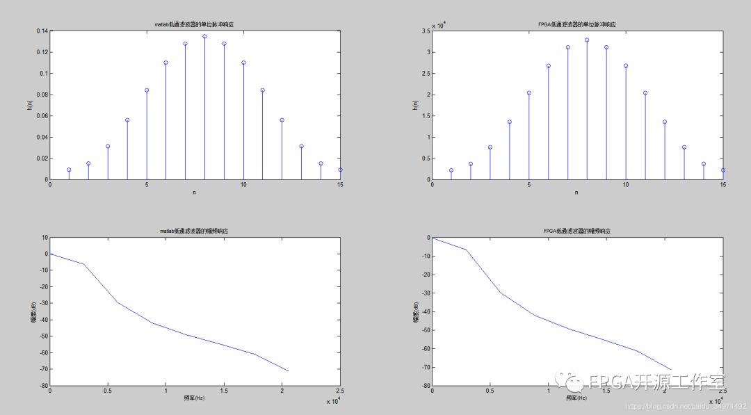 要求:使用fir濾波器設計一個濾波器系數(shù)為15階的低通濾波器,通帶截止頻率為1KHZ,采樣頻率為44.1khz。