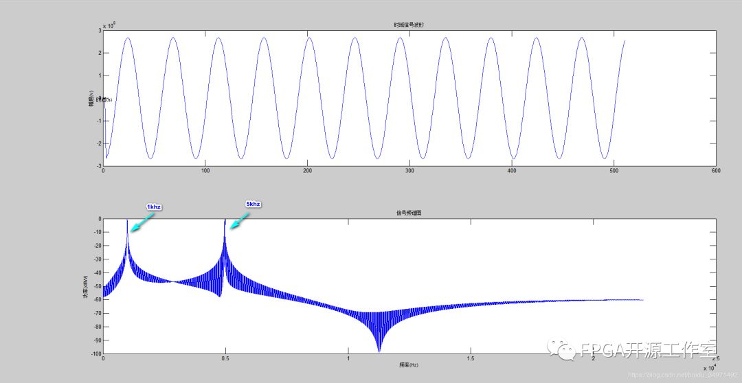 由圖4的頻域圖可知,測試源產(chǎn)生了1khz和5khz的sin。
