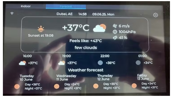 用戶界面有兩個主要選項卡(室內(nèi)和天氣預報)和一個額外的設置選項卡。