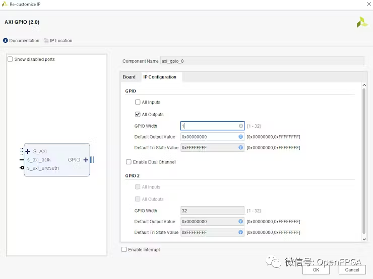 選擇 GPIO 輸出和 AXI 定時(shí)器 PWM 并將其設(shè)引出