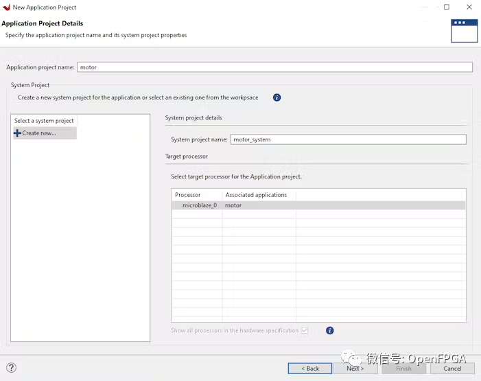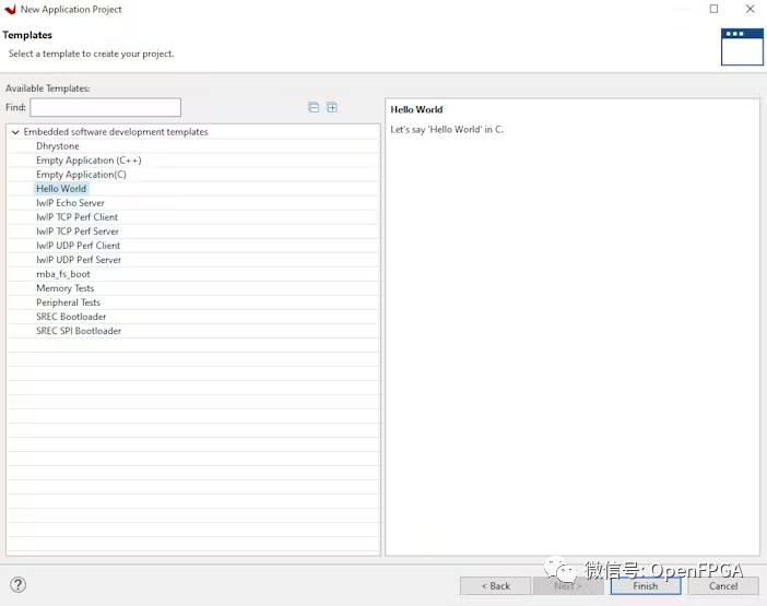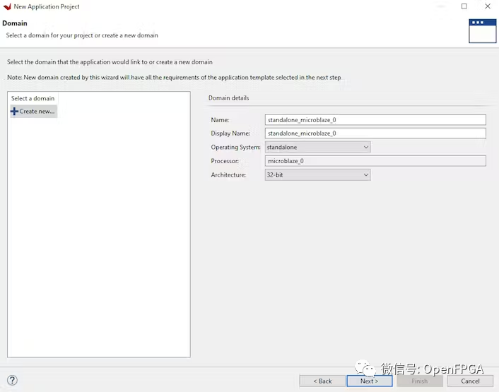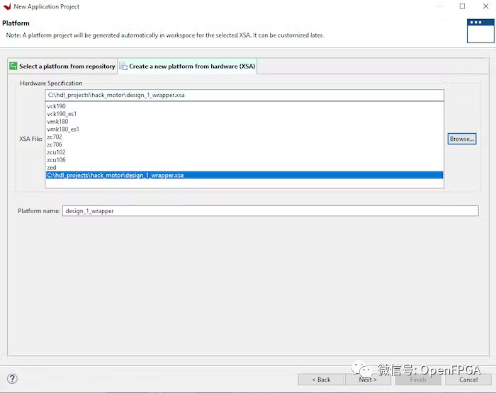 打開(kāi)Vitis創(chuàng)建一個(gè)新的應(yīng)用程序項(xiàng)目并選擇剛剛導(dǎo)出的XSA。