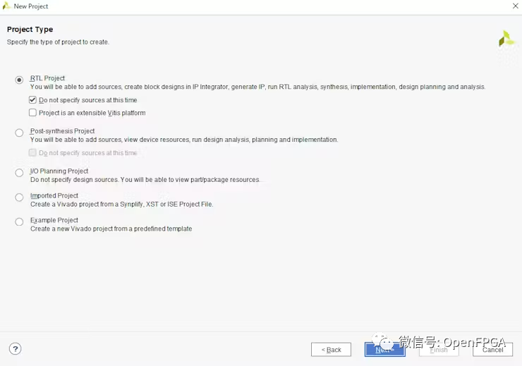 選擇 RTL 項(xiàng)目但不指定來(lái)源