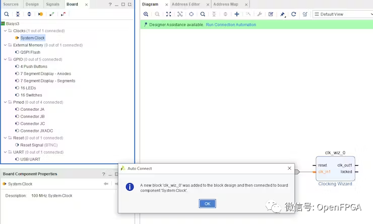 從“板”選項(xiàng)卡將系統(tǒng)時(shí)鐘拉到框圖上