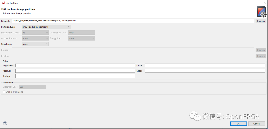 如果我們將分區(qū)類型設(shè)置為由引導(dǎo)ROM加載的PMU,它將由引導(dǎo)ROM加載。