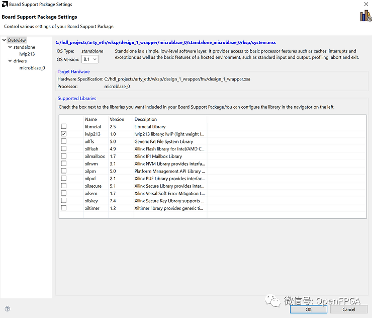 以 MicroBlaze 處理器為目標并選擇 LWIP Echo Server 應(yīng)用程序。