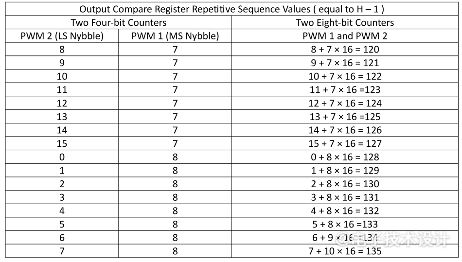 表1:四位和八位PWM模式用于生成圖2波形的OCR值。