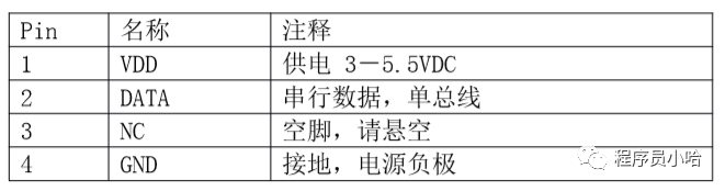 DHT11引腳說明(正面觀看,左邊的為1腳):