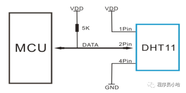 1、MCU發(fā)送開始起始信號總線空閑狀態(tài)為高電平,主機把總線拉低等待DHT11響應;與MCU相連的SDA數(shù)據(jù)引腳置為輸出模式;主機把總線拉低至少18毫秒,然后拉高20-40us等待DHT返回響應信號;2、讀取DHT11響應SDA數(shù)據(jù)引腳設為輸入模式;DHT11檢測到起始信號后,會將總線拉低80us,然后拉高80us作為響應;3、DHT11送出40bit數(shù)據(jù)注意: