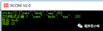 void ParseStrDemo(void){ char strArr[] = "{\"name\":\"Andy\",\"age\":20}"; cJSON *str_json, *str_name, *str_age; printf("strArr[]:%s \r\n",strArr); str_json = cJSON_Parse(strArr); //創(chuàng)建JSON解析對象,返回JSON格式是否正確 if (!str_json) { printf("JSON格式錯(cuò)誤:%s \r\n", cJSON_GetErrorPtr()); //輸出json格式錯(cuò)誤信息 } else { printf("JSON格式正確:\n%s \r\n",cJSON_Print(str_json) ); str_name = cJSON_GetObjectItem(str_json, "name"); //獲取name鍵對應(yīng)的值的信息 if (str_name->type == cJSON_String) { printf("姓名:%s \r\n", str_name->valuestring); } str_age = cJSON_GetObjectItem(str_json, "age"); //獲取age鍵對應(yīng)的值的信息 if(str_age->type==cJSON_Number) { printf("年齡:%d \r\n", str_age->valueint); } cJSON_Delete(str_json); //釋放內(nèi)存 }}int main(void){ while(1) { ParseStrDemo(); delay_ms(1000); } }