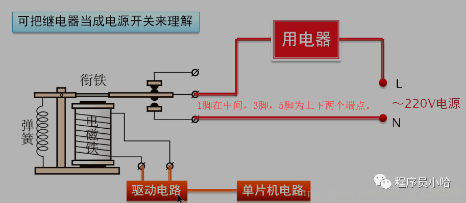 控制線圈的信號(hào)可以是弱信號(hào)(如5V),而被控制電源可以是強(qiáng)信號(hào)(如220VAC@10A),實(shí)現(xiàn)弱電控制強(qiáng)電,結(jié)合單片機(jī)實(shí)現(xiàn)自動(dòng)化。