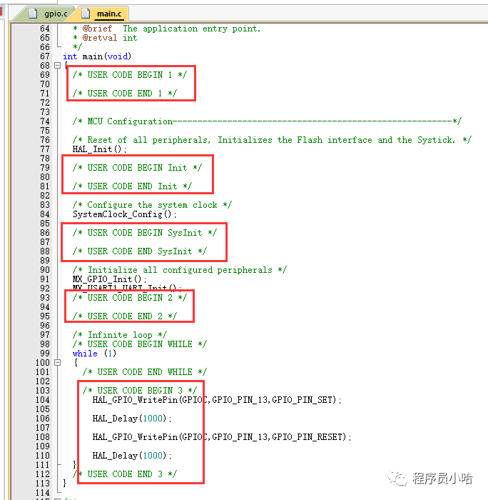 編寫(xiě)Keil代碼的時(shí)候,注意代碼存放位置,應(yīng)該放在成對(duì)的USER CODE BEGIN 和USER CODE END之間,放錯(cuò)位置,改動(dòng)STM32CubeMX工程設(shè)置之后,代碼可能會(huì)丟失。