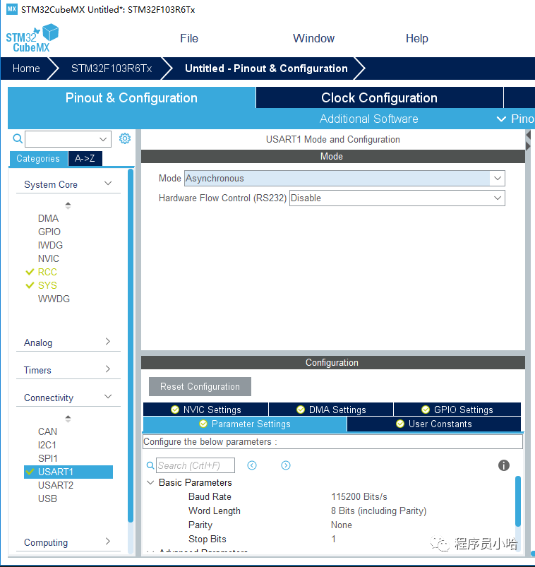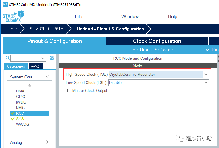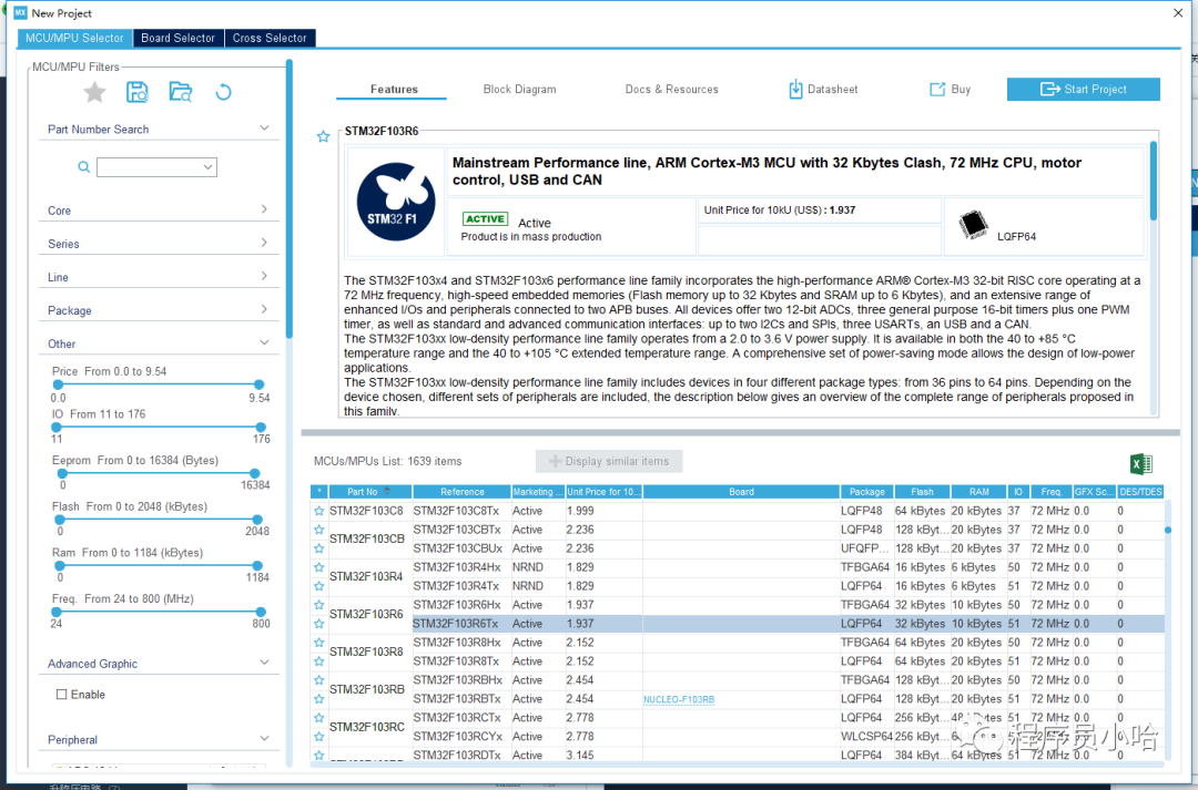 - 使用STM32CubeMX創(chuàng)建主芯片為STM32F103R6的工程。