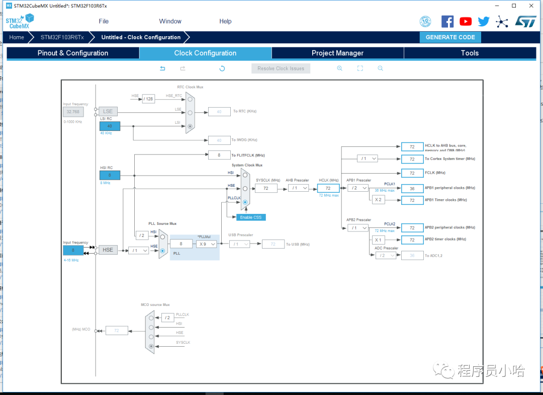 - 使用STM32CubeMX創(chuàng)建STM32F103R6的工程