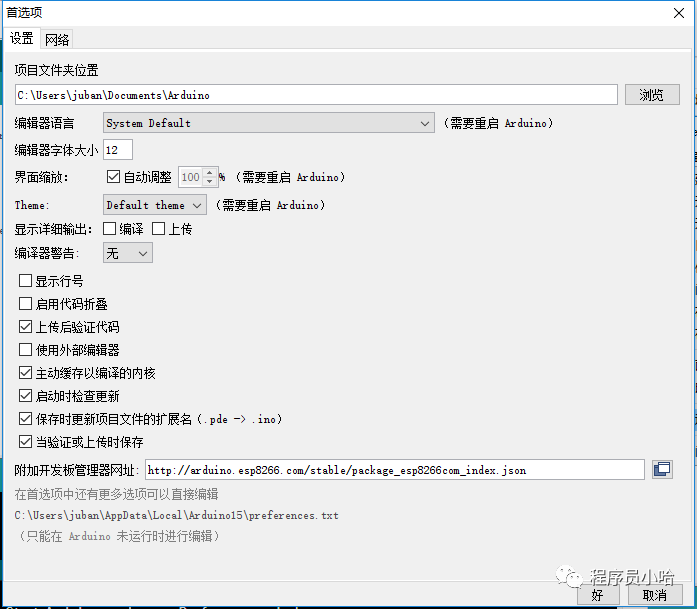 在“附加開發(fā)板管理器網(wǎng)址”處輸入: