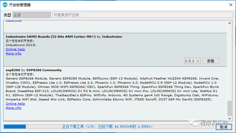 進入:工具-->開發(fā)板-->開發(fā)板管理器