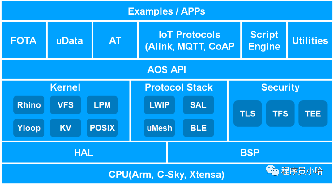 從底部到頂部,AliOS Things包括:
